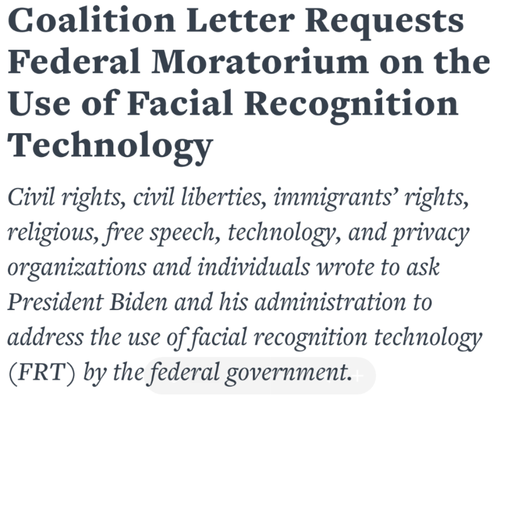 Coalition Letter Requests Federal Moratorium on the Use of Facial Recognition Technology