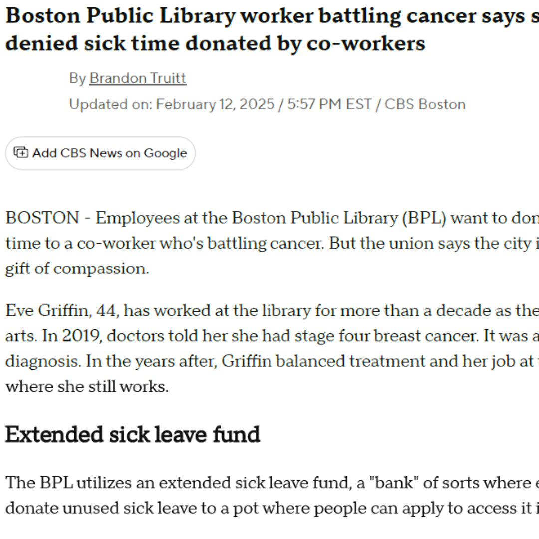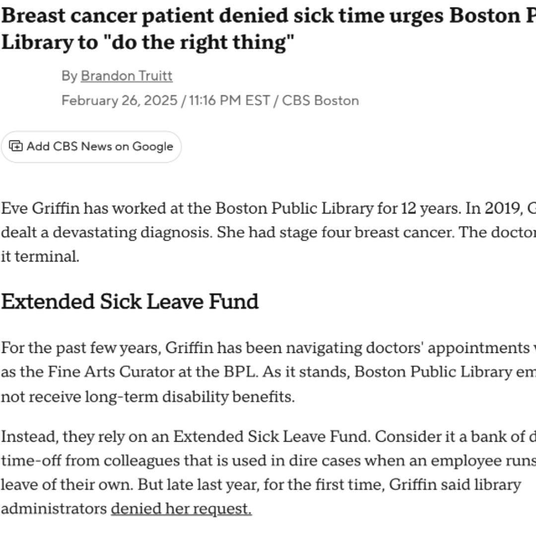 Breast Cancer Patient Denied Sick Time Urges Boston Public Library to ‘Do the Right Thing’