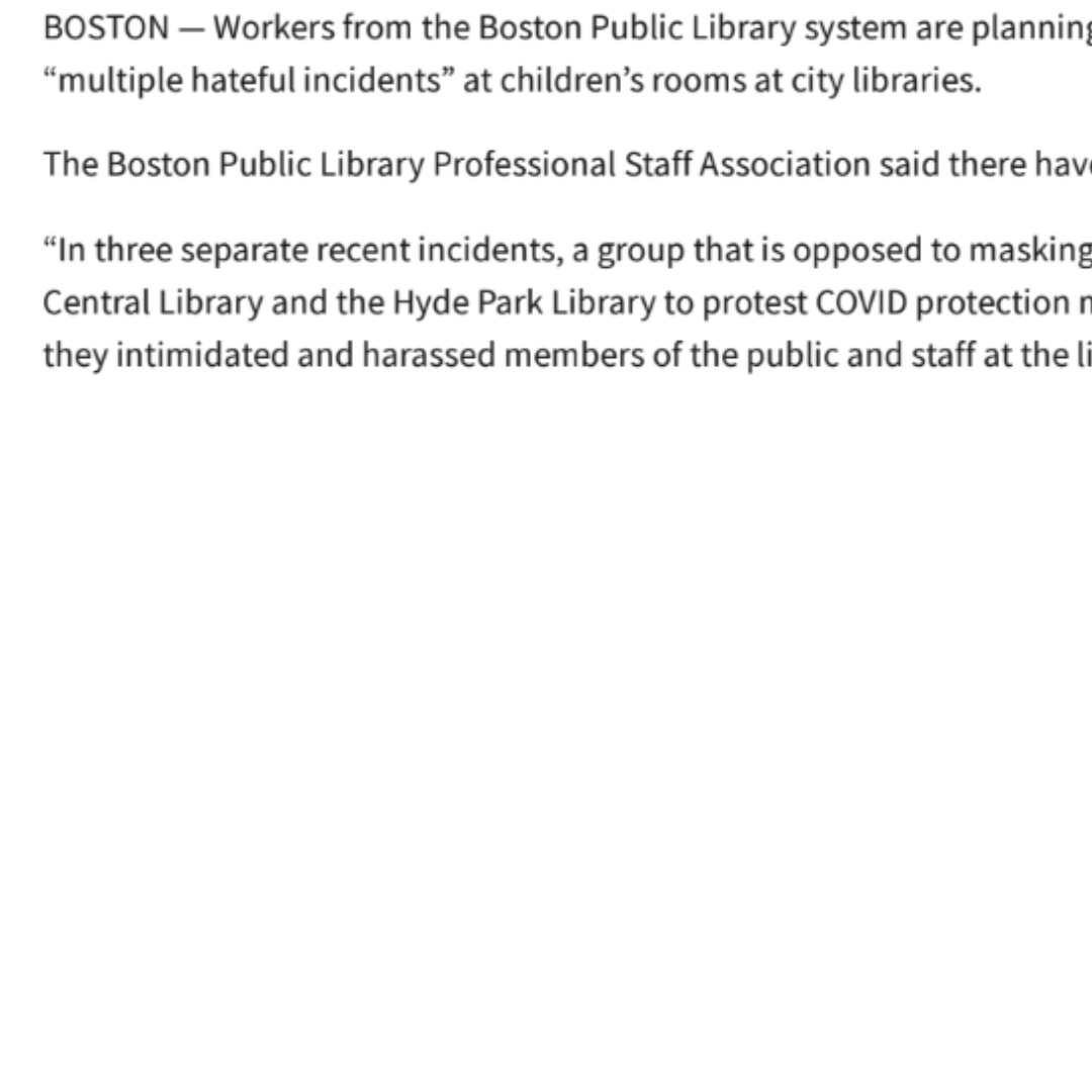 Workers Cite ‘Multiple Hateful Incidents’ in Children’s Library Rooms in Boston