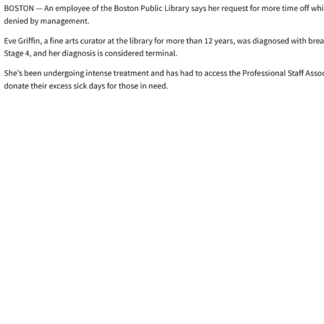 Boston Public Library Worker Battling Cancer Says She Was Denied Sick Time Donated by Co-Workers