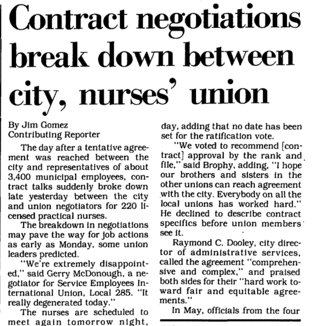 Contract Negotiations Break Down Between City, Nurses’ Union