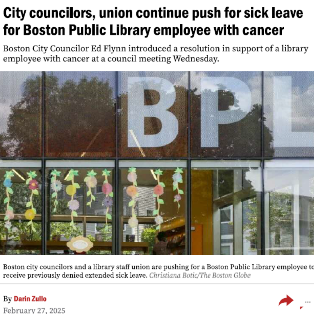 City Councilors, Union Continue Push for Sick Leave for Boston Public Library Employee with Cancer